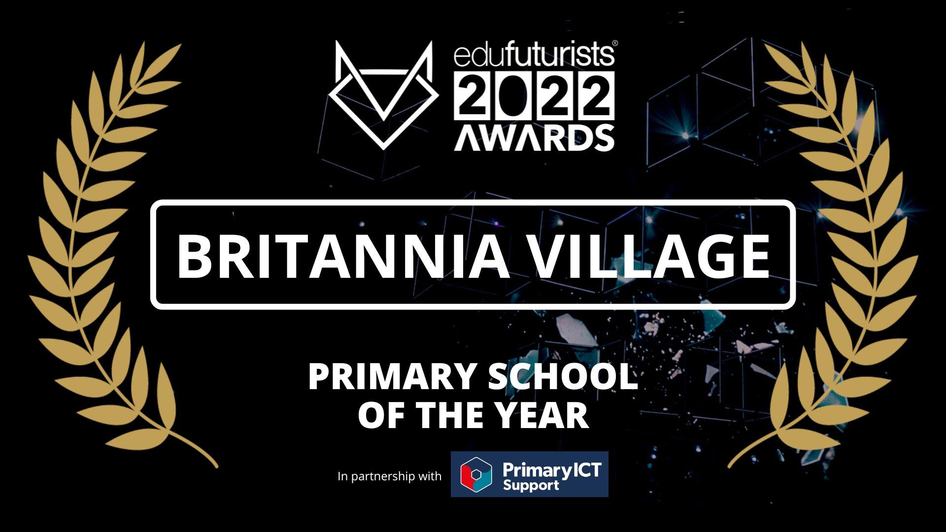 We are delighted to inform you that Britannia Village has been awarded the Edufuturists Primary School of the Year Award 2022. This prestigious national achievement recognises the innovative way that staff use technology to support students' learning and to prepare them for whatever the future may hold.